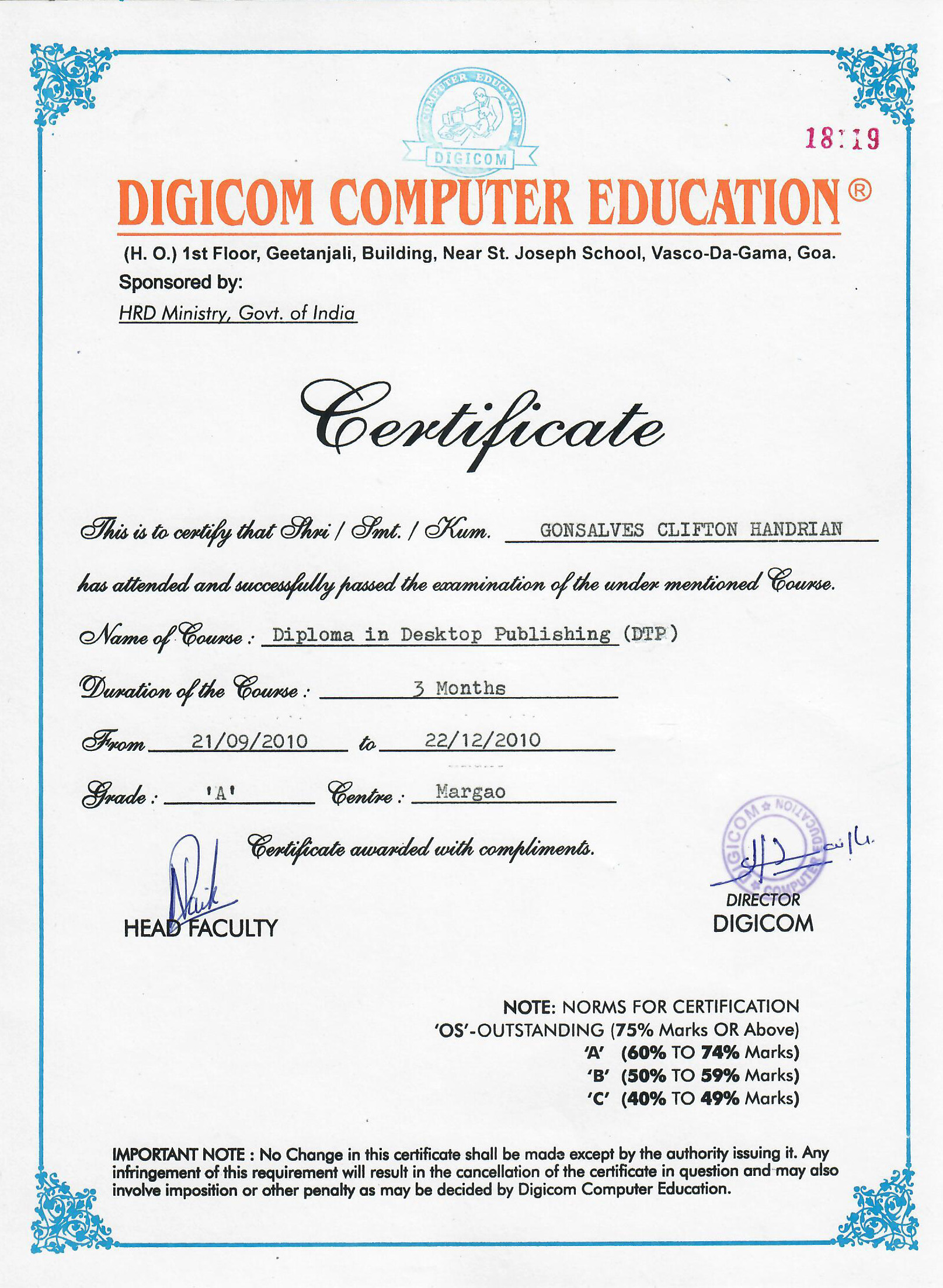 YEAR QUALIFICATION NAME INSTITUTE NAME CERTIFICATE