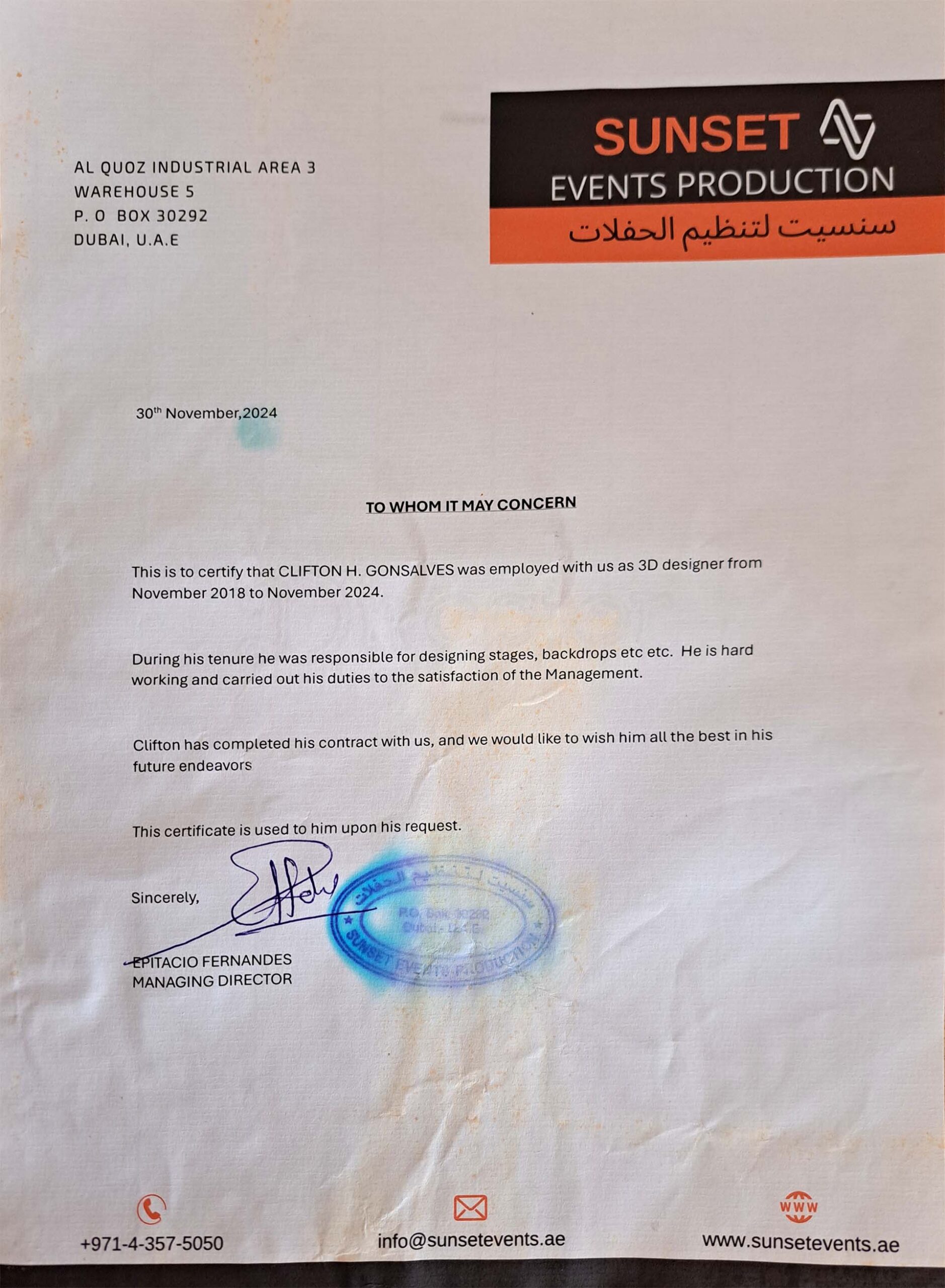 Work Description: Worked over 130 Corporate and wedding events. Handled Corporate events with one to one client coordination, understanding theme requirements, Designing, print handling, 3D prop designing, scaling and production requirements. Creating venue layouts based on recce. Coordinating with the vendors, production unit for the design requirements. [ View experience Certificate]